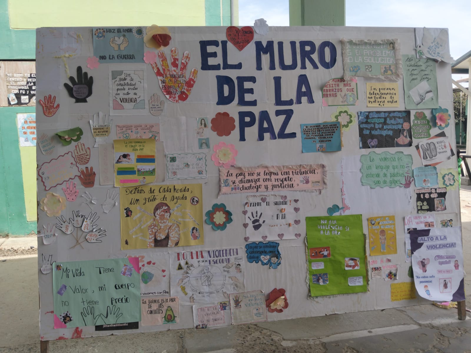 El «Muro de la Paz» en educación es un proyecto artístico-pedagógico donde los estudiantes construyen un muro simbólico como forma de conmemorar y promover la paz. Consiste en que los alumnos crean «ladrillos» decorados con dibujos, frases, nombres de mujeres que lucharon por la paz o mensajes sobre la no violencia, que luego son ensamblados por toda la comunidad educativa.